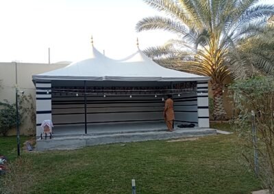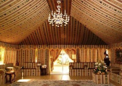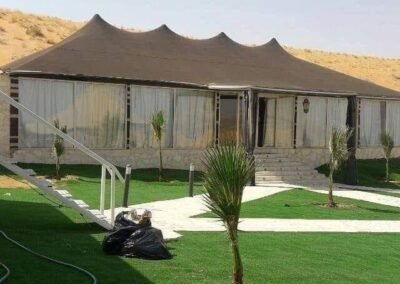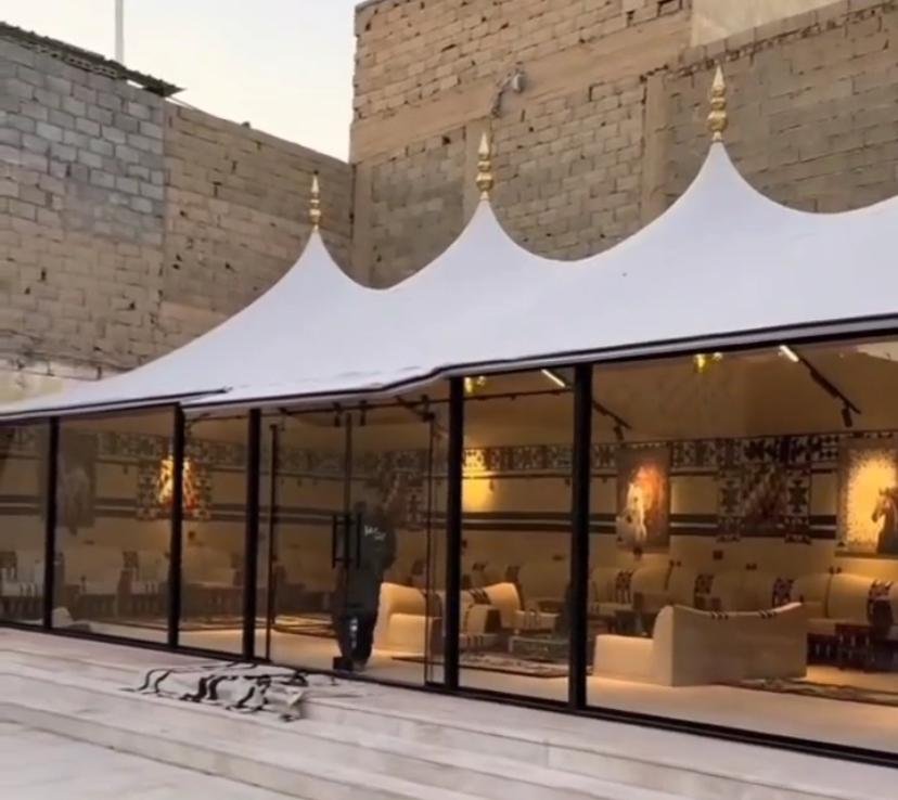 نحن مؤسسة خيام الرياض، رواد في تقديم حلول المكان المثالي لكل مناسبة. تأسست مؤسستنا مع رؤية واضحة تركز على تلبية احتياجات العملاء من خلال تقديم منتجات ذات جودة عالية وخدمات استثنائية. نتميز بتصميماتنا الفريدة والمبتكرة، سواء كانت خيام ملكية، بيوت شعر، مظلات، أو سواتر، حيث نعمل بكل جد لتلبية توقعات عملائنا وتحقيق رؤاهم. فريقنا يتكون من خبراء مؤهلين مكرسين لتقديم أفضل الحلول، ولدينا شغف كبير تجاه كل ما يتعلق بالأحداث والمناسبات. نحن ندرك أهمية كل تفصيلة، لذا نسعى جاهدين لتوفير تجربة مخصصة وفريدة من نوعها، تضفي لمسة من الفخامة والجمال على جميع الفعاليات. نحن نؤمن بأن نجاحنا يعتمد على رضا العملاء، ولذلك نلتزم بتقديم خدمات ما بعد البيع واهتمام خاص بكل عميل. من خلال استخدام مواد عالية الجودة وتقنيات حديثة، نقدم لك منتجات تدوم طويلاً وتضفي طابعًا خاصًا على أي مناسبة. في مؤسسة خيام الرياض، نحن هنا لنساعدك في إنشاء ذكريات لا تُنسى بأفضل طريقة ممكنة. انضم إلينا لتجد الحلول المثالية التي تبحث عنها ولتستمتع بتجربة فريدة من نوعها تجعل كل مناسبة مميزة وفريدة.